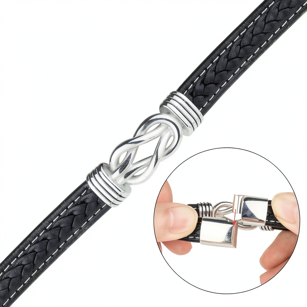 Il bracciale è realizzato in acciaio inossidabile di alta qualità e pelle, garantendo resistenza alla ruggine e un aspetto raffinato nel tempo.