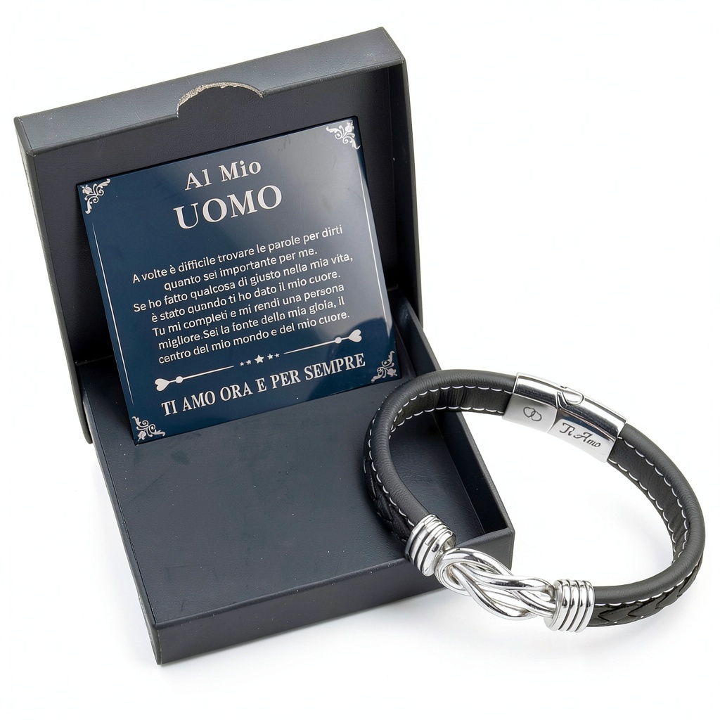 Scegli questo bracciale per la sua combinazione unica di materiali premium: acciaio inossidabile anti-ossidazione e pelle resistente, garantendo longevità e comfort. La confezione regalo e il biglietto affettuoso incluso semplificano la scelta del regalo, mentre le recensioni positive dei clienti (4,3 su 5 stelle) attestano la soddisfazione. Con un prezzo accessibile e una garanzia di reso entro 30 giorni, offriamo qualità e sicurezza negli acquisti.