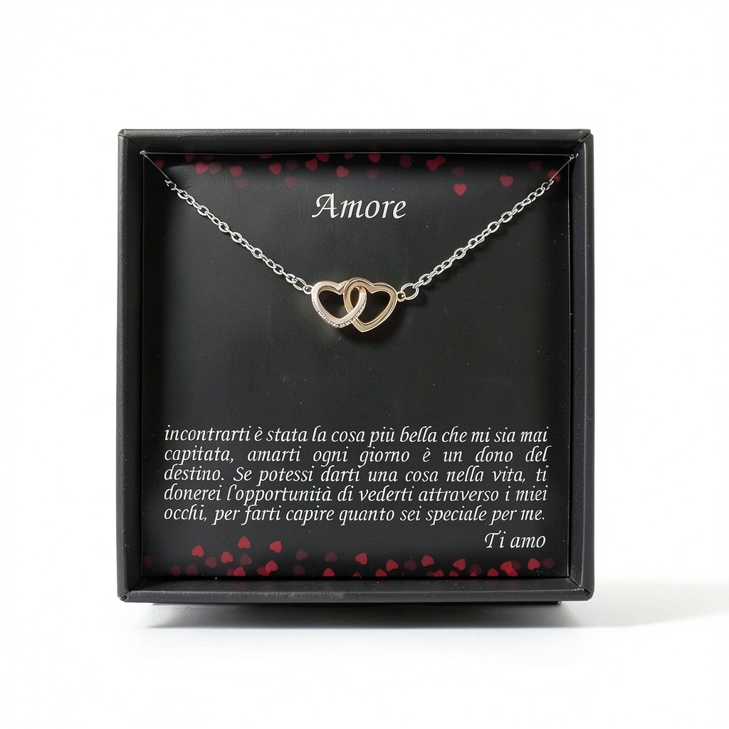 - Ciondolo a cuori intrecciati con messaggio d’amore personalizzabile per un tocco unico e romantico