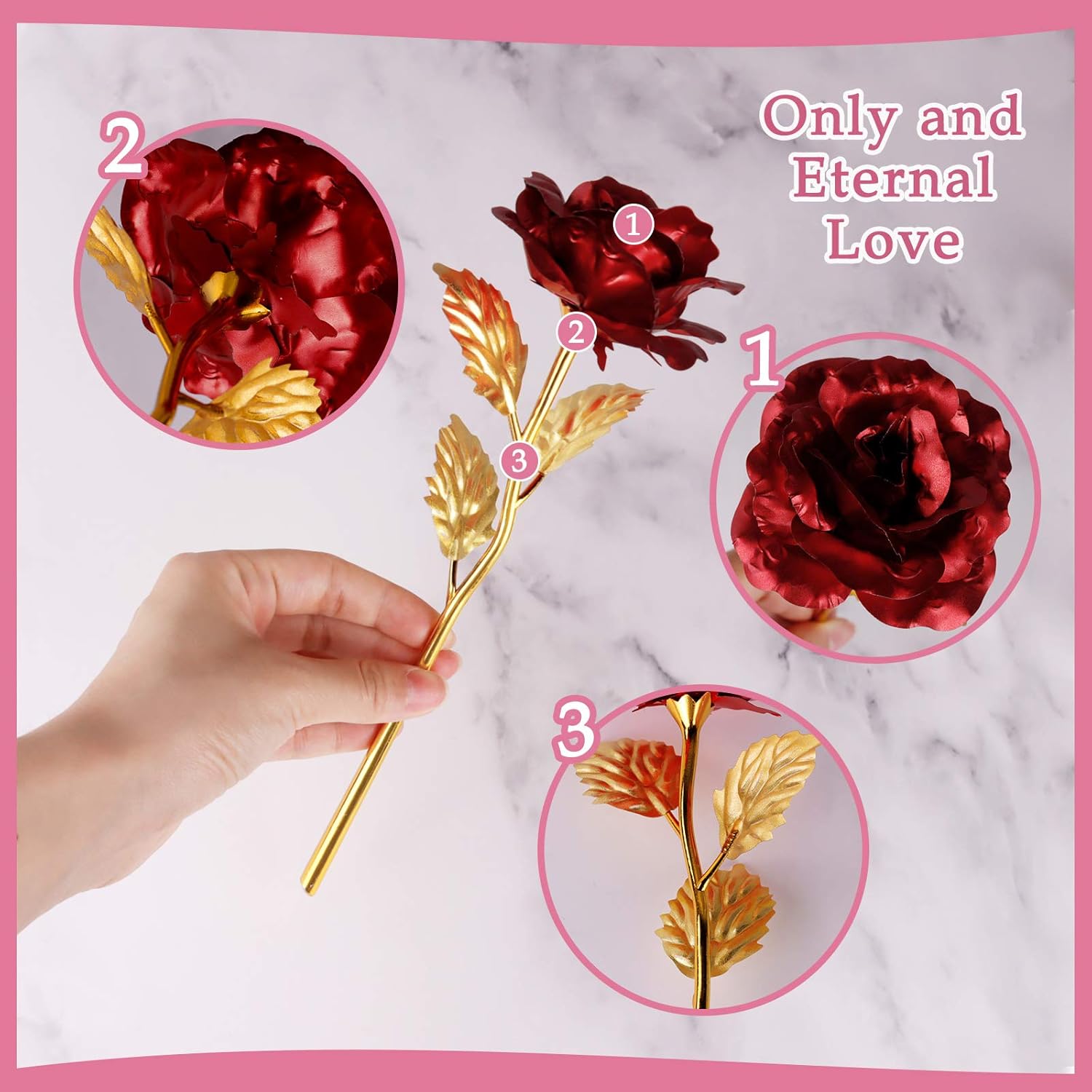 - Design in oro elegante con steli dorati, foglie e petali rossi per un aspetto realistico e raffinato.